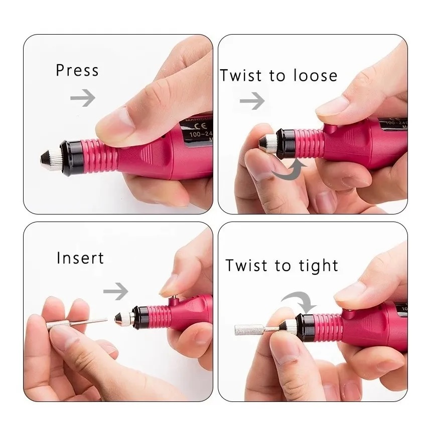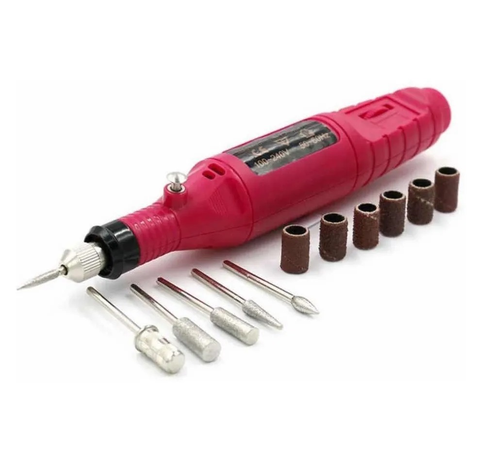 Torno Eléctrico para uñas con Kit de fresas Apto para manicuria y pedicuria Ligero y Portátil Usos múltiples: tallado, grabado, encaminando, modelado, lijado, pulido, perforación, etc.
