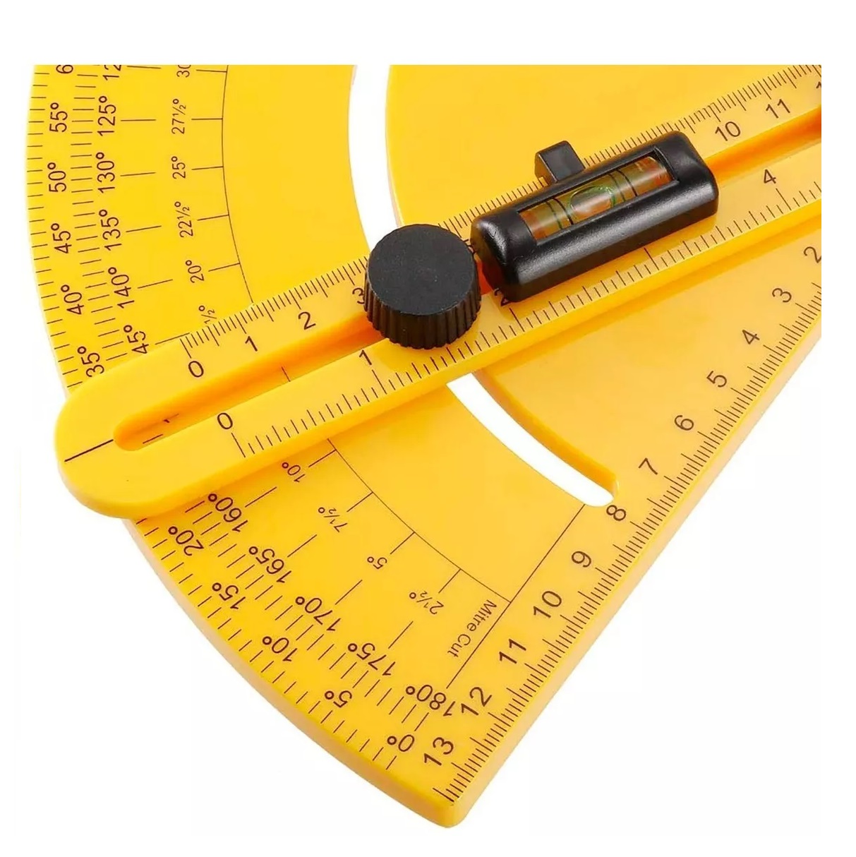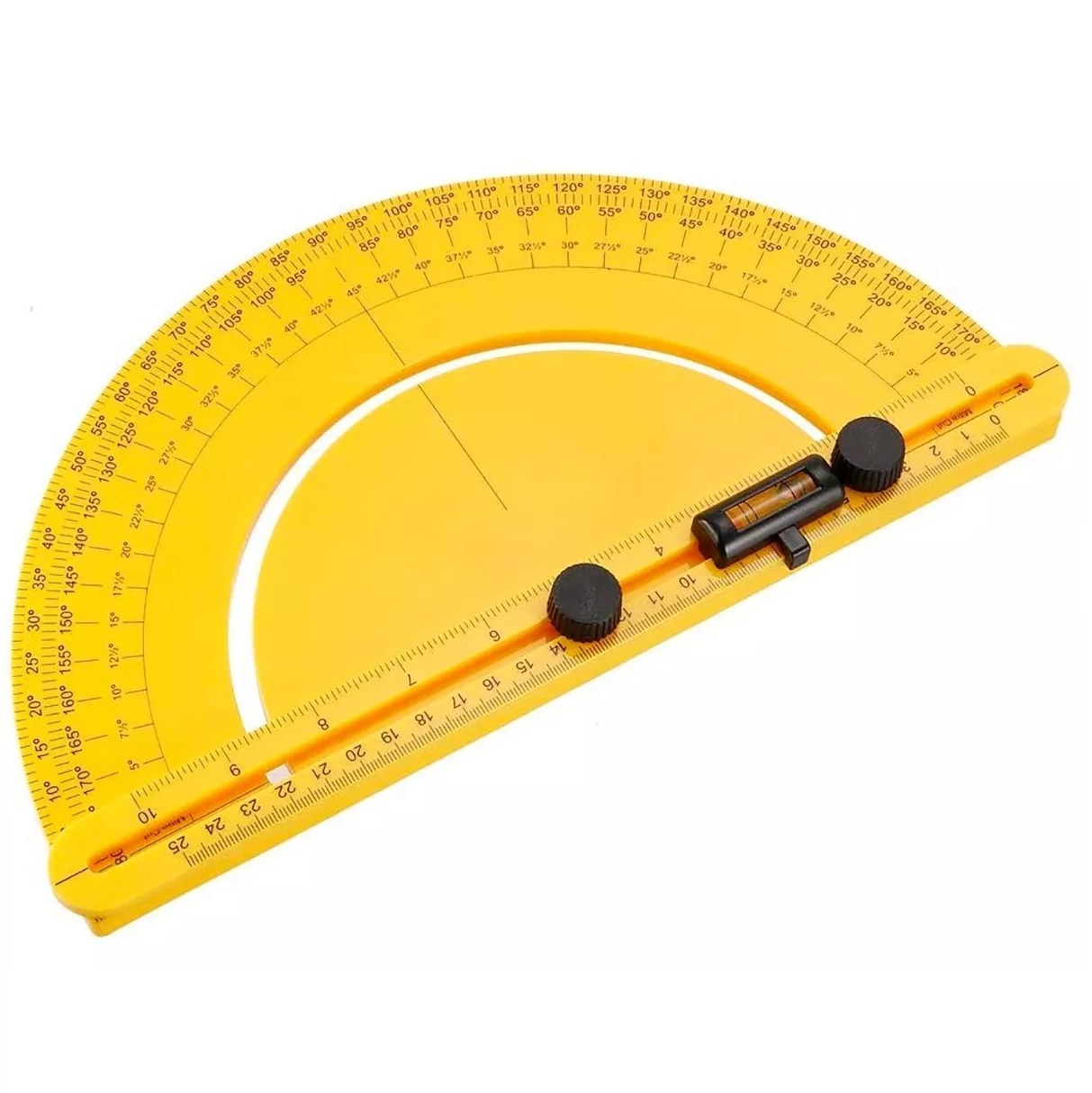 Transportador y Buscador de Angulos con Nivel Rango 0-180° – Regla 25 cm – Plastico ABS