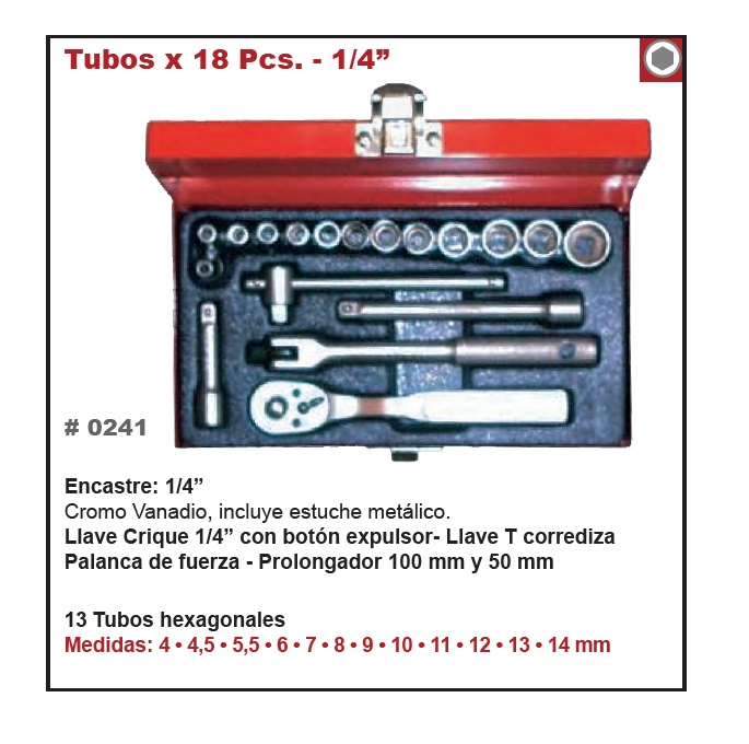 Tubos x18 pz 1/4″ Caja Metal Eurotech
