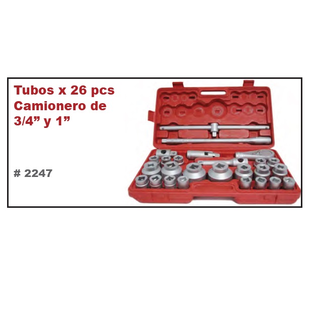 JUEGO DE TUBOS ENCASTRE 3/4 Y 1″ 26 PIEZAS CON MALETIN